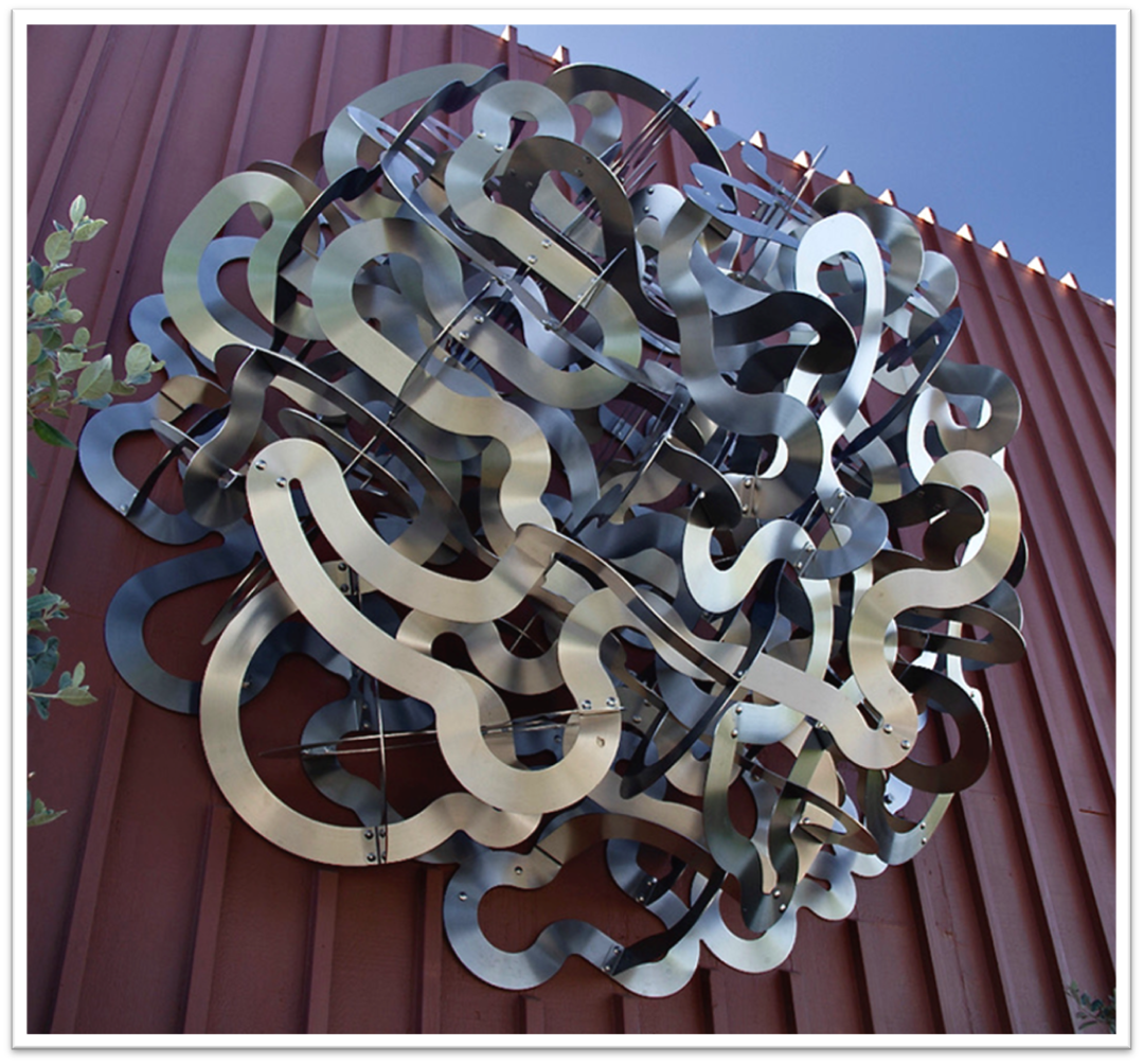 Entering Sebastopol from the WEST you will see: Michael McGinness’ sculpture “Grey Matter” installed outside of our public library.